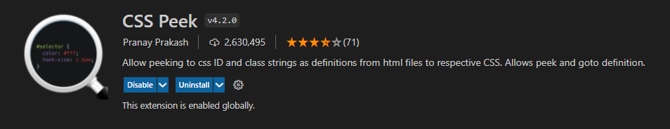 ctrl 누르고 id 또는 class 명 클릭, 또는 id 또는 class 명 위에 커서를 두고 오른쪽 클릭 후 peek -> peek definition을 통해 이용할 수 있습니다.