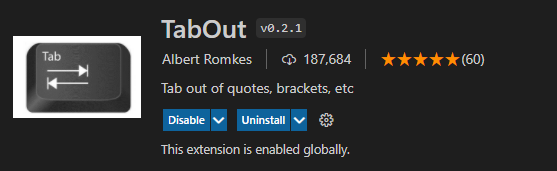 코드를 작성하는 과정에서 괄호"( ), { }, [ ]"를 Tab키로 빠져나올 수 있게 해주는 확장 플러그인입니다.