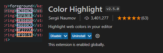 색상을 설정하는 코드에서 가시적으로 그 코드에 해당하는 색상을 확인할 수 있는 플러그인입니다.