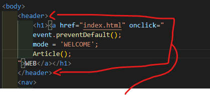 만약 <header></header>태그를 변경하고 싶다면, 시작 또는 닫는 태그 중 하나만 골라서 수정을 하면 나머지 쌍 태그도 함께 수정이 됩니다.