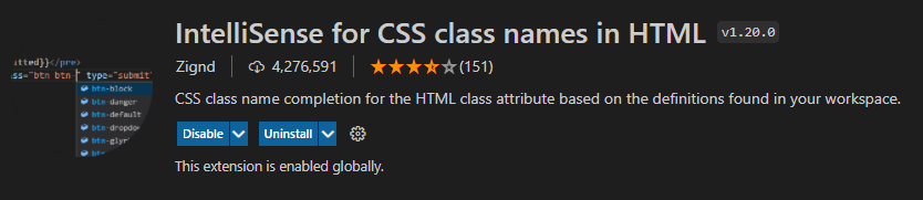 - IntelliSense for CSS class names in HTML