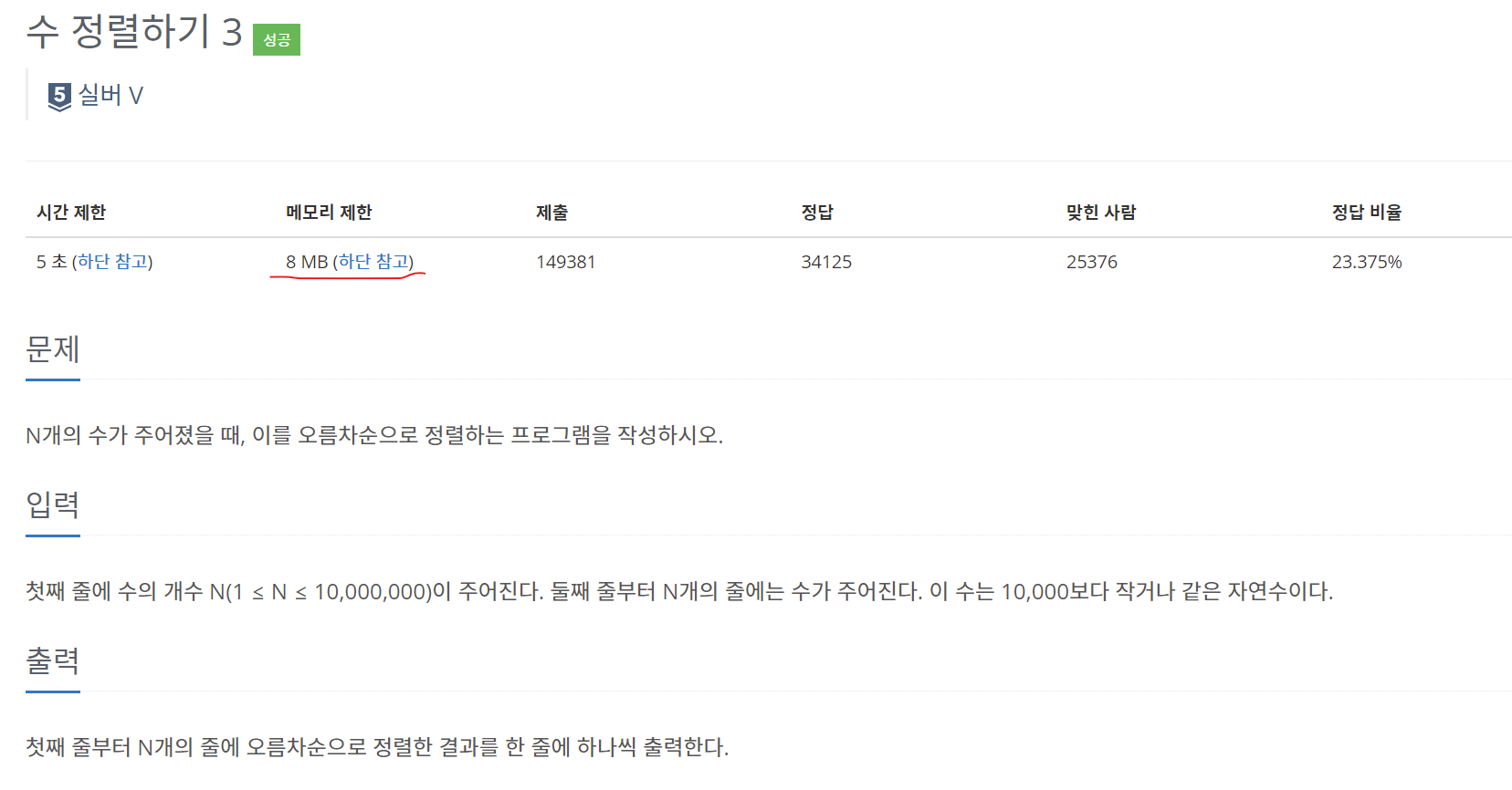 위 문제는 메모리 제한이 8MB라는 조건이 있었습니다.