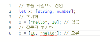 튜플 타입을 사용하면, 요소의 타입과 개수가 고정된 배열을 표현할 수 있다.