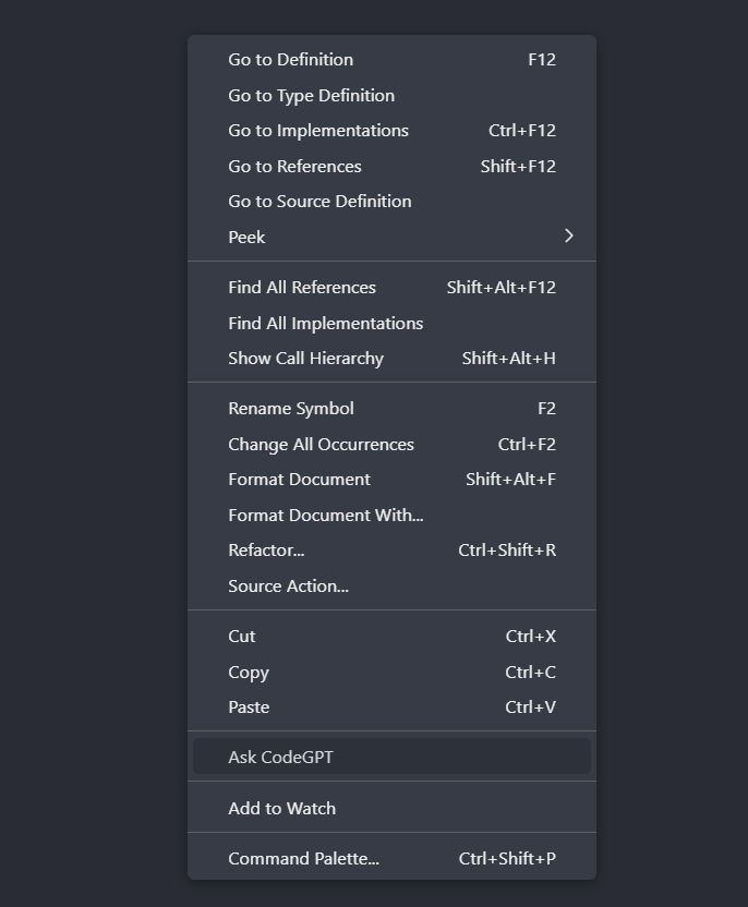 - Ask CodeGPT - code selected