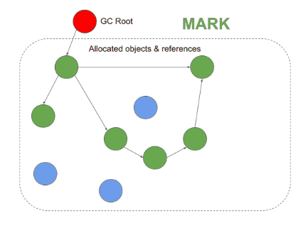 - Stack과 글로벌 변수 등에서 시작하여 객체 그래프를 탐색한다.