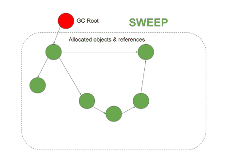 Sweeping은 메모리에서 비어 있는 공간을 식별하고 이를 재사용 가능하도록 표시하는 것을 목표로 한다.